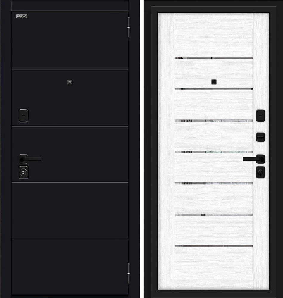 Надежная входная Дверь Браво Прайд Total Black/Snow Melinga премиум класса по цене 39 537 руб. Большая толщина стали защитит от проникновения в ваш дом, квартиру или коттедж. Используется очень качественная фурнитура: замки, цилиндры, ручки, защелки. Покрытие и отделка двери изготовлено под внимательным контролем производителя. Дверь имеет долгий срок службы и гарантию.