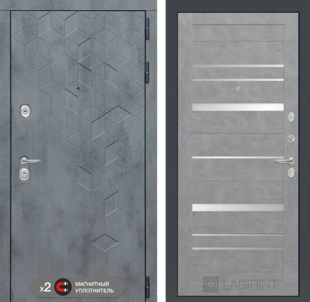 Дизайнерская входная Дверь Бетон класса Люкс с несколькими листами стали, звукоизоляцией и теплоизоляцией. Утепленный короб и полотно защитят от сквозняков и шумов. Модель не только надежная, комфортная, защищенная и высочайшего качества, но и очень красивая! Будет отлично сочетаться с интерьером дома, квартиры или офиса. Сейчас действует выгодное предложение по цене: 53 787 руб.