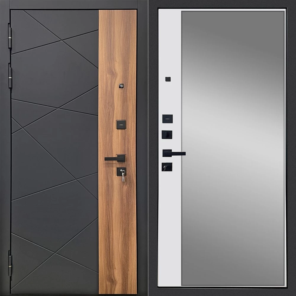 Дизайнерская входная Дверь Ратибор РАКУРС 3К ЗЕРКАЛО класса Люкс с несколькими листами стали, звукоизоляцией и теплоизоляцией. Утепленный короб и полотно защитят от сквозняков и шумов. Модель не только надежная, комфортная, защищенная и высочайшего качества, но и очень красивая! Будет отлично сочетаться с интерьером дома, квартиры или офиса. Сейчас действует выгодное предложение по цене: 55 237 руб.