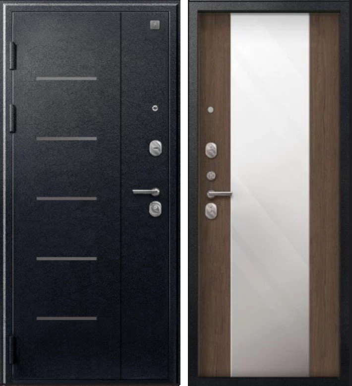 Надежная входная Дверь V-04 Черный муар - Миндаль Зеркало премиум класса по цене 44 887 руб. Большая толщина стали защитит от проникновения в ваш дом, квартиру или коттедж. Используется очень качественная фурнитура: замки, цилиндры, ручки, защелки. Покрытие и отделка двери изготовлено под внимательным контролем производителя. Дверь имеет долгий срок службы и гарантию.